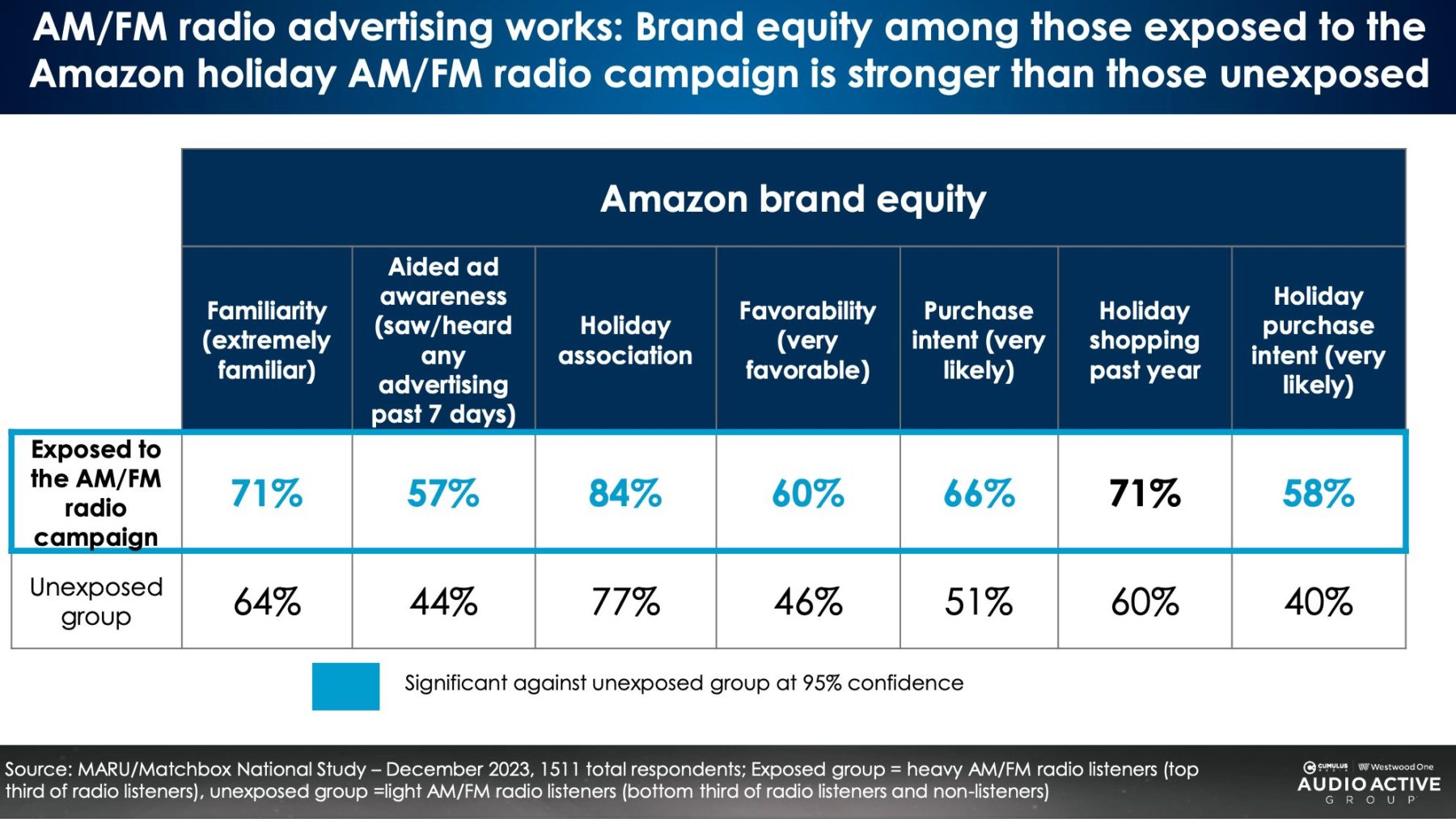 La comparaison entre publics exposés et non exposés à la campagne radio d’Amazon est spectaculaire :