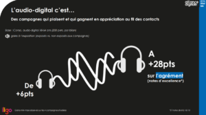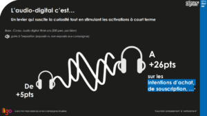 Le format audio digital permet d’améliorer les intentions de +5 à +26 points, en suscitant la curiosité, en stimulant les activations à court terme.
