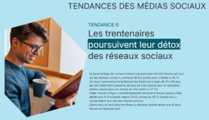 Autre tendance structurante : le temps passé devant la télévision continue de baisser, préféré par les moins de 30 ans par le streaming et les sessions plus courtes. Plus de streaming audio musical et podcast au quotidien, y compris chez les plus de 50 ans. Du côté des réseaux sociaux la tendance est à la détox toutes tranches d’âge confondues.