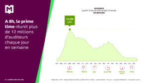 Son pic d’audience reste solidement installé à 8h avec 12,2 millions d’auditeurs.